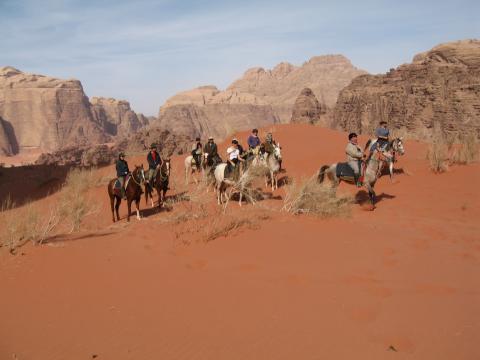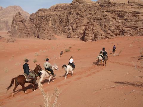 We spend the next 5 day exploring the beautiful desert area of Wadi Rum. After breakfast you take down your tent, you brush and saddle your horse and