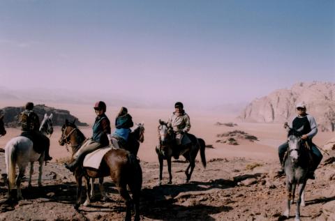 We spend the next 5 day exploring the beautiful desert area of Wadi Rum. After breakfast you take down your tent, you brush and saddle your horse and